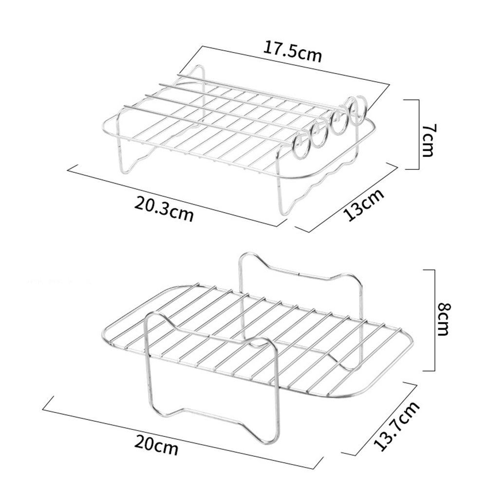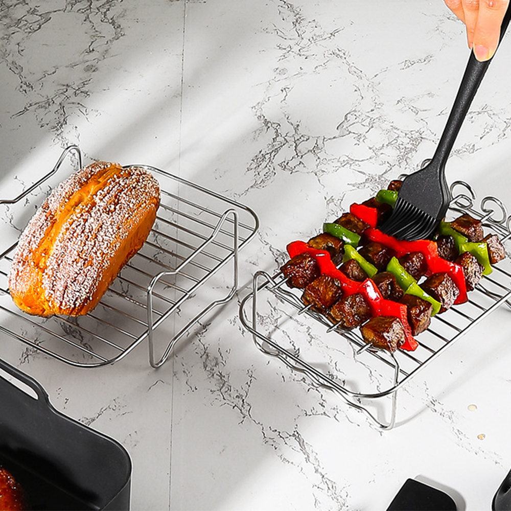 Specially designed for air fryers, it is an ideal tool for grilling meat and skewers: